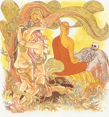 [1] Deze en de volgende alinea heb ik in de verzen 288 en 289 herhaald om een aansluiting op Patacara's verhaal te krijgen.