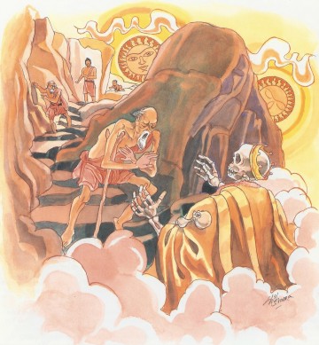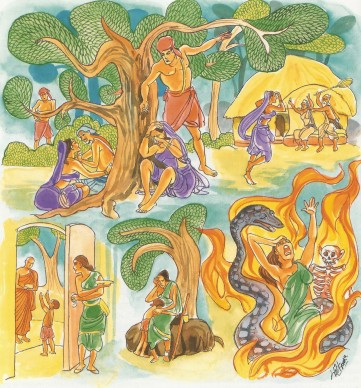235. Je bent nu zoals een uitgedroogd blad, je bent in de macht van de dood; je staat nu op de drempel van de dood, nochtans heb je geen proviand voor onderweg. pandupalaso'va'dani'si yamapurisa'pi ca tam upatthita uyyogamukhe ca titthasi patheyyam'pi ca te na vijjati Nu ben je als een verdroogd, verkleurd blad. Het eerste zuchtje van de wind doet je vallen. De machten van de dood zijn voor je gekomen. Je staat nu op de drempel van de dood en je hebt geen enkel proviand voor onderweg.