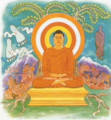 254. In de lucht is geen pad te bespeuren. Op dezelfde wijze zijn hierbuiten (het boeddhistische systeem) geen monniken te bespeuren. De massa is overmand door vele wereldse hindernissen. Tathagata's zijn vrij van al die hindernissen. akase padam natthi samano natthi bahire papañcabhirata paja nippapañca Tathagata. In de lucht zijn er geen voetstappen (of een pad) te bespeuren. Op dezelfde manier zijn er, buiten het boeddhistische systeem, geen personen die als monnik (samana) kunnen worden aangemerkt. Het gewone volk is overmand door vele wereldse hindernissen, maar de Boeddha's zijn door die hindernissen niet aangetast. |
